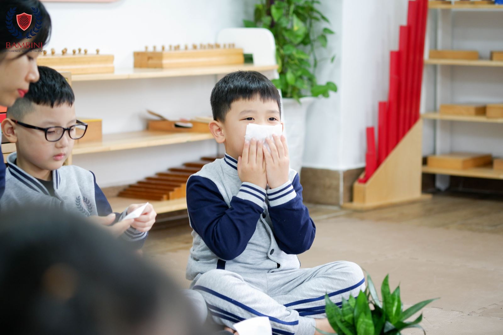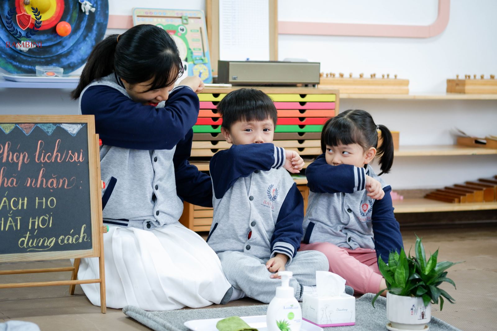 Trời bắt đầu trở lạnh rồi, những cơn ho hay hắt hơi ghé thăm là chuyện dễ gặp. Vì thế, trong chủ đề Phép lịch sự nhã nhặn, cô đã cùng các con học cách “Ho và hắt hơi đúng cách” để chúng mình vừa biết giữ gìn sức khỏe, vừa không làm ảnh hưởng đến người khác